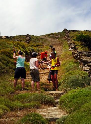 Το πρώτο φετινό πρόγραμμα καθαρισμού μονοπατιών στην Άνδρο, από διεθνείς εθελοντές της μη κερδοσκοπικής οργάνωσης ΕΛΙΞ πλησιάζει στην ολοκλήρωση του, καθώς κλείνει το ερχόμενο Σάββατο. Οι 8 εθελοντές που απάρτισαν την πρώτη αυτή ομάδα, εξακολουθούν να καθαρίζουν τμήμα της διαδρομής 2, που εκτείνεται από τα Αποίκια μέσω Υψηλού στο Νημπορειό. Το μονοπάτι αυτό παρουσίασε σημαντική δυσκολία στον καθαρισμό του, εξαιτίας του γεγονότος πως μπαζώθηκε από φερτά υλικά κατά την κατασκευή του δρόμου που κατευθύνεται προς τη Μονή Αγ. Μαρίνας και τις Εβρουσσιές.
