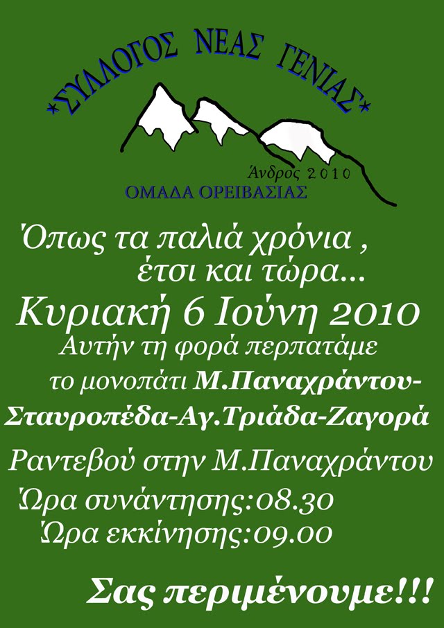 Ακόμα μια φορά,ο Σύλλογος Νέας Γενιάς διοργανώνει πεζοπορία στα μονοπάτια του νησιού μας!