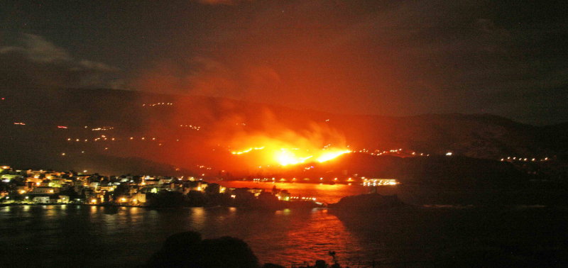Η φωτιά ξεκίνησε στις 3:00πμ από άγνωστη βεβαίως αιτία, σε περιοχή των Στενιών πέρασε με την βοήθεια του δυνατού αέρα τον δρόμο Χώρας Αποικίων  και κατηφόρισε προς το Νειμποριό.