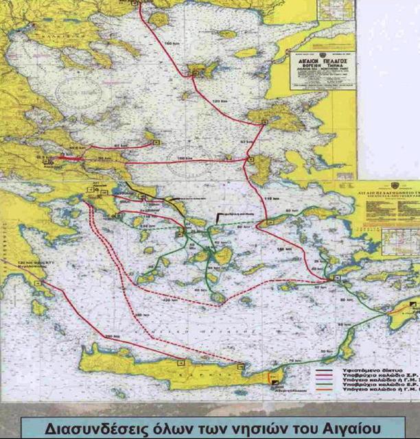 Επάνω: Ο χάρτης που αναφέρεται στο κείμενο και αφορά τη διασύνδεση των νησιών με υποβρύχια καλώδια
