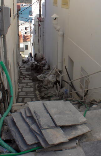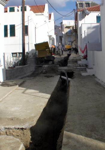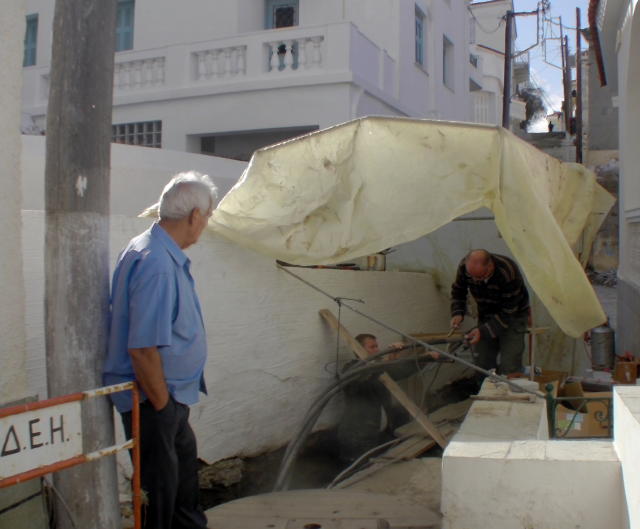 Μετά την Αγορά τα συνεργεία της Δ.Ε.Η. συνεχίζουν τις εργασίες της υπογειοποίησης των καλωδίων στα σοκάκια της Χώρας με κατεύθυνση την Πλακούρα, υπολογίζεται ότι μέχρι τα μέσα Φεβρουαρίου θα τερματίσουν τη γραμμή μπροστά στο Τεχνικό Γραφείο Γονέου και θα ξεκινήσουν τη γραμμή Δημοτικό Σχολείο- Πλατεία Θεόφιλου Καΐρη.