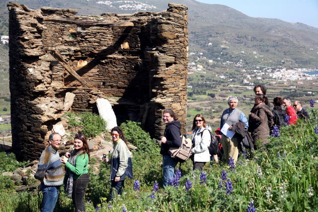 Ξεναγός μας ο Στέφανος Νομικός, αρχιτέκτονας που εδώ και αρκετά χρόνια με την ερευνητική του ομάδα, κατέγραψαν όλους τους μύλους που κατάφεραν να εντοπίσουν και αποτύπωσαν χαρακτηριστικά δείγματα του σημαντικού αυτού πλούτου που διαθέτει η Άνδρος.