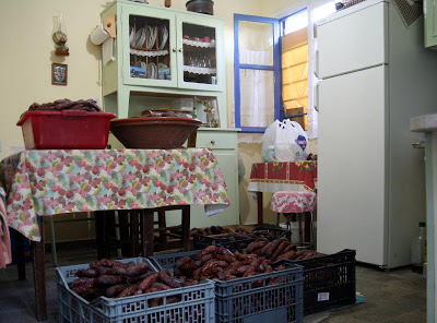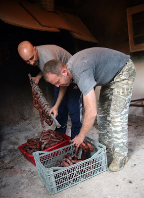 Με σύμμαχο τον ψυχρό καιρό ,λίγο πριν το καλοκαίρι, ο Μποζάκης κάνει χοιροσφάγια και την τρίτη μέρα καπνίζει τα λουκάνικα,αύριο το καβούρντισμα και το μπίθιασμα στη γλίνα