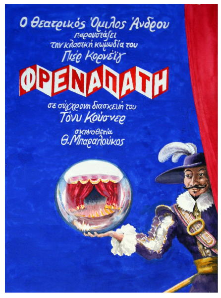 Ελεύθερα διασκευασμένο από τον αμερικανό συγγραφέα Τόνι Κούσνερ με τον τίτλο «Φρεναπάτη», το κλασικό έργο του Πιερ Κορνέιγ «Κωμική ψευδαίσθηση» ανεβαίνει από τον Θεατρικό Όμιλο Άνδρου σε λίγες μέρες στο Δημοτικό Θέατρο Άνδρου.