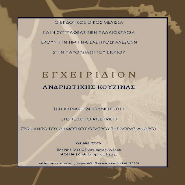 Θα είναι εξαιρετική τιμή και χαρά να παρευρεθείτε στην εκδήλωση της παρουσίασης στην Άνδρο