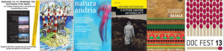 Κύρια φροντίδα της όμως εδώ και δέκα πέντε χρόνια είναι να υπάρχει κινηματογράφος τον χειμώνα στην Άνδρο όπου συναντιόμαστε, βλέπουμε ταινίες ,συζητάμε με μεζεδάκια, γλυκά και ρακή. Αυτό θέλουμε να το συνεχίσουμε και φέτος και την όρεξη την έχουμε, χρειαζόμαστε όμως την