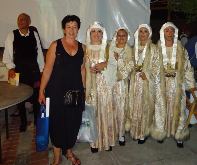 | Αντιπροσωπεία γυναικών του συλλόγου με τη πρόεδρο Μαρία Κορρέ δώρα ανδριώτικα φέρουσα για τις αρχές του τόπου |