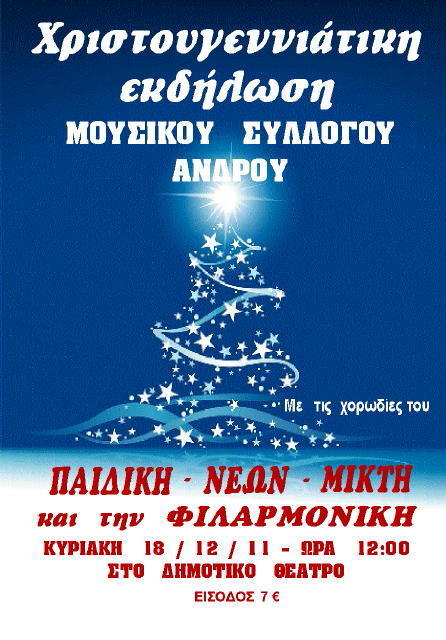 Η Ανδρος εχει ενα μοναδικο ρεκορ για νησι. Παρα πολλους συλλογους που στην επωνυμια τους φερουν λεξεις πολιτισμου και εξωραισμου. Ειναι δε γνωστο οτι σε πολλες (αν οχι ολες ) τις εκδηλωσεις που κανουν εχουν και καποιο αντιτιμο για την ενισχυση τους , περαν της ετησιας συνδρομης. Σε ανταλλαγμα προσφερουν λαικα ή παραδοσιακα μουσικα σχηματα, εδεσματα, γλυκισματα, ροφηματα, αφεψιματα, ρακια, οινους .Αρτο και θεαματα. Ο ΜΟΥ.ΣΑ παρεχει διεξοδα σε μικρους και μεγαλους, μουσικη παιδεια και προαγει τον μουσικο πολιτισμο του νησιου μας τοσο εντος οσο και εκτος αυτου. Θα ηταν πιο ορθο αν η διοικηση του εξηγουσε στους γονεις και στα μελη του τις οικονομικες δυσκολιες που(αν) αντιμετωπιζει για να γινουν κατανοητες απο ολους και αν μπορουν να συνδραμουν περαν των προβλεπομενων. Η τιμη του εισιτηριου θεωρω οτι ηταν υψηλη αν και κατα την αποψη μου δεν θα επρεπε να υπαρχη αντιτιμο γιατι τα ελλειματα τα αντιμετωπιζεις εσωτερικα και οχι κατα καποιο τροπο εκβιαστικα επειδη ξερεις οτι ειναι επισημη παρουσιαση και εκει θα ερθουν ολοι οι συγγνεις και φιλοι για να θαυμασουν καμαρωσουν τα παιδια τους, τους μεγαλους χορωδους και να απολαυσουν μια υπεροχη παρασταση .Επισης ειναι μεγαλο ατοπημα αν ισχυουν οσα εγραψε ο γονεας για τα μη ευχαριστω του προεδρου. Εγω αν και δεν συμμετεχω ακομα σε αυτες τις δραστηριοτητες θα πω ενα μεγαλο ευχαριστω στους γονεις εκεινους που οδηγουν τα παιδια τους σε τετοια μονοπατια μορφωσης και διαπαιδαγωγησης και δειχνουν σε εμας τους αμυητους οτι υπαρχουν και αλλου φωτεινοι δρομοι και ενα στον ΜΟΥ.ΣΑ για την παροχη των μεσων , αλλα θα του δειξω και κιτρινη καρτα. Και του χρονου χωρις καπελλο.Καλες γιορτες σε ολους.