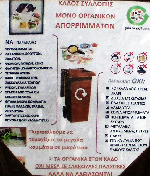 | Οι οδηγίες πάνω στον κάδο για σωστή κομποστοποίηση |