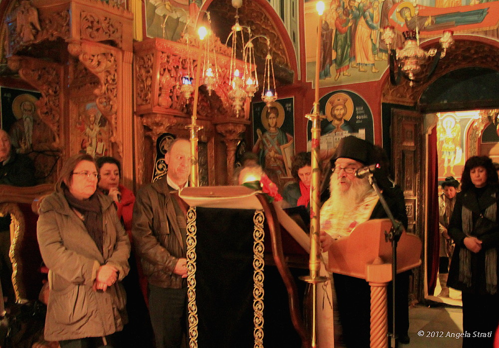 παρακολούθησε την ακολουθία των Γ΄ Χαιρετισμών στην Υπεραγία Θεοτόκο. Μετά το πέρας την ακολουθίας ο ηγούμενος πατέρας Ευδόκιμος και οι μοναχοί της μονής μάς δέχτηκαν στην τράπεζα και μας κέρασαν καφέ και γλυκό. Τους ευχαριστούμε πολύ για τη φιλοξενία και τους ευχόμαστε Καλή Ανάσταση.
