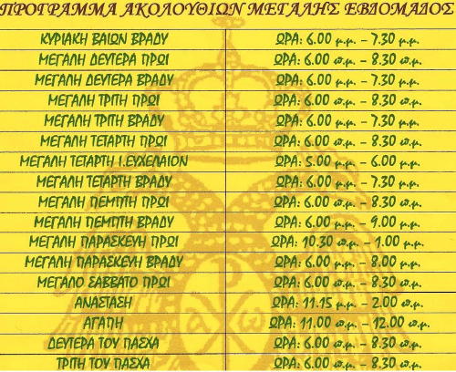Ιερές Ακολουθίες της Μεγάλης εβδομάδας, σύμφωνα με το πρόγραμμα που βρίσκεται