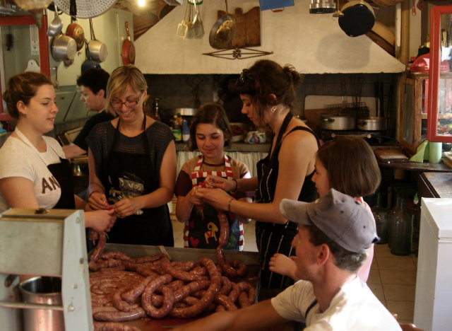 | Χοιροσφάγια με τις κοπέλες του χωριού να δένουν λουκάνικα! |