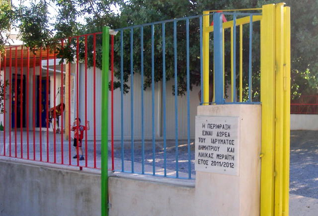 για την ευγενική χορηγία του στην κατασκευή της προστατευτικής περίφραξης του Νηπιαγωγείου μας.