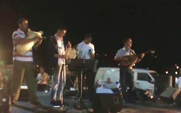 Στο προαύλιο του Δημοτικού Σχολείου Γαυρίου, από την ορχήστρα του Πνευματικού Κέντρου του Δήμου Νέας Ιωνίας με μαέστρο τον Στέφανο Ψαραδάκο.