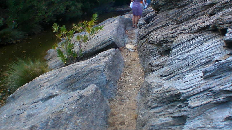 | Το λαξευτό στο βράχο χαντάκι του νερού για τον νερόμυλο |