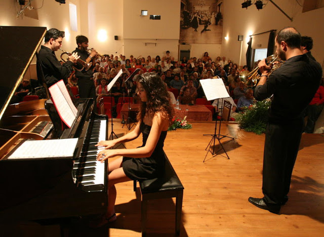 | εν αναμονή των αποτελεσμάτων έπαιξαν οι Phalanx Brass τις τρομπέτες τους και η Αμαλία Τηνιακού στο πιάνο |