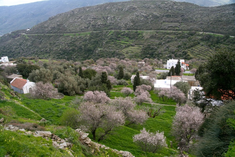 Το πανέμορφο Μπισκοπειό με το Λευκόποδα και τις Γερακώνες από πάνω, με το ρέμα,το ργυάκι,τον τράφο,τα γκρεμνά,του κωτάκη,του παλκά…….με τα νερά και της δροσιές του. Πανέμορφες οι αμυγδαλιές,η φύση στάθηκε απλόχερη με το χωριό,ή μάλλον με ολόκληρη την Άνδρο. Να είσαι καλά Βαγγέλη με ταξίδεψες για ακόμα μια φορά.