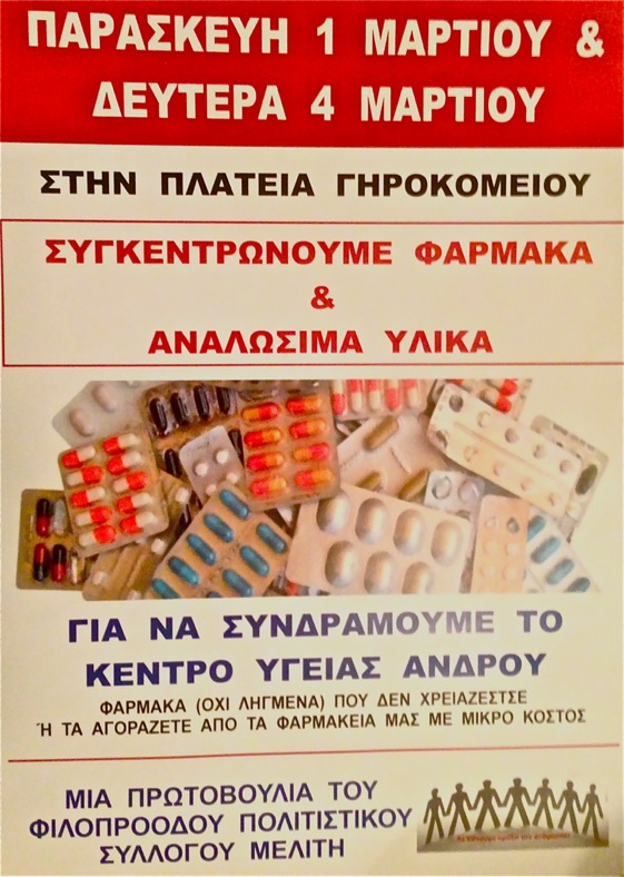 Ο Σύλλογος “Ο Μελίτης” αποφάσισε να βοηθήσει το Κέντρο Υγείας Άνδρου με φάρμακα και αναλώσιμα υλικά.