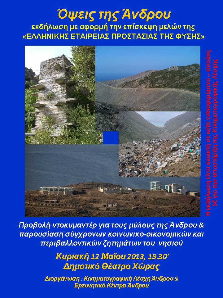 κ.α. Παρουσίαση περιβαλλοντικών ζητημάτων της Άνδρου (€ 5 για την ενίσχυση της Λέσχης).