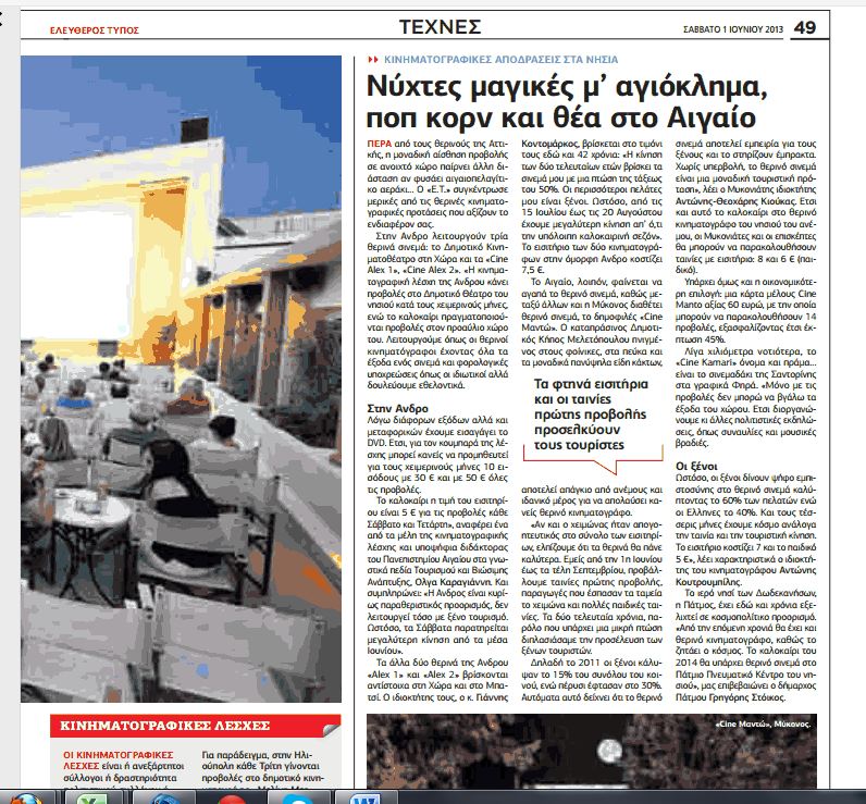 H Κινηματογραφική Λέσχη Άνδρου στον ελληνικό Τύπο