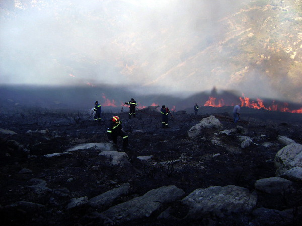 με σκοπό να εμποδίσουν το πύρινο μέτωπο να περάσει το δρόμο. Παρότι η εμπειρία