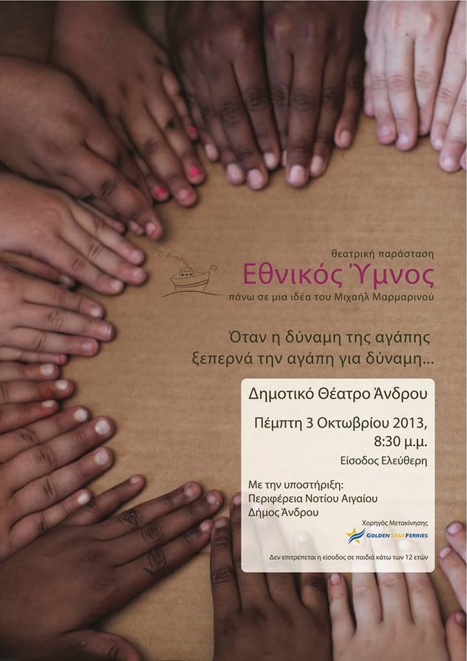 την Πέμπτη 3 Οκτωβρίου 2013, στις 8.30 μ.μ. στο Δημοτικό Θέατρο Άνδρου.