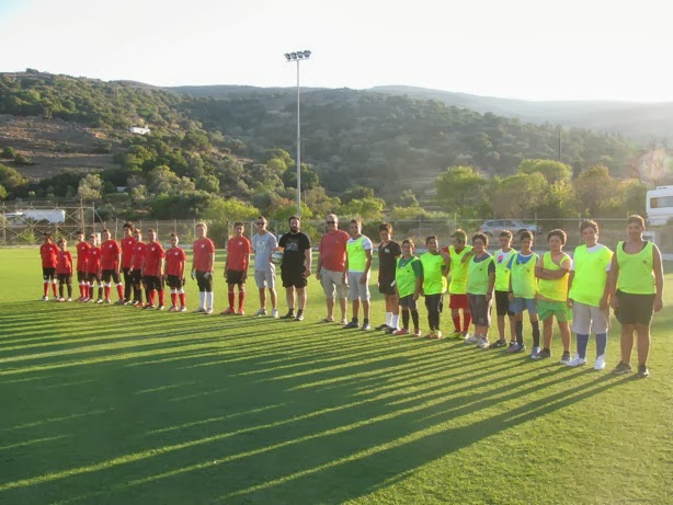 το γήπεδο περιοχής Αλαμανιάς Κορθίου όπου παρακολούθησε την προπόνηση μεγαλύτερης σε ηλικίας παιδιών της Σχολής παρέχοντας