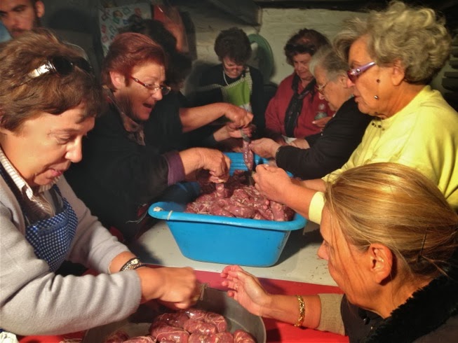 πρωί πρωί ψιλοκόβουν τα κρέατα για τα λουκάνικα