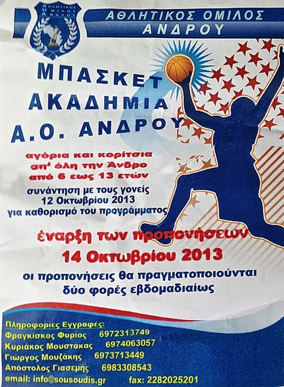 Ο Αθλητικός Όμιλος Άνδρου διαθέτει ακαδημία μπάσκετ για παιδιά ηλικίας 06-12 ετών και έδρα της ομάδας είναι το Εμπειρίκειο Γυμναστήριο στη Χώρα της Άνδρου.