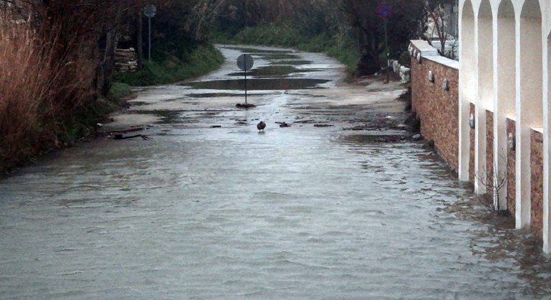 | Ρέμα-δρόμος σαν λίμνη στο Μπατσί, 31 Ιανουαρίου 2015 |
