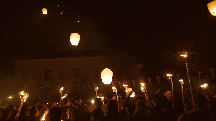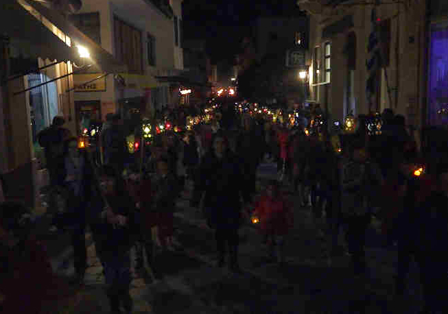 και όταν νύχτωσε με την τελευταία περιφορά λαμπαδοφορία με 50 ανναμένους μασαλάδες, πολλά φαναράκια, άλλα σε κοντάρια και άλλα ιπτάμενα!