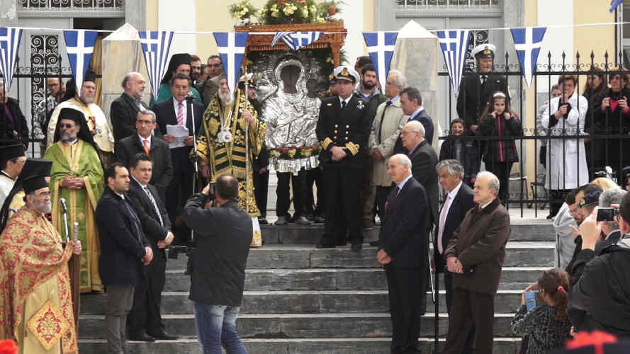 και λίγο πριν τη περιφορά της εικόνας ο σεβασμιώτατος μητροπολίτης κ. Δωρόθεος απονέμει μετάλλια της Μητρόπολης για την πολύχρονη προσφορά τους στους εκπαιδευτικούς,