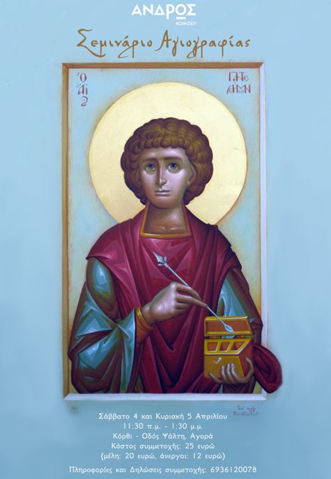 Η Κοινωνική Συνεταιριστική Επιχείρηση Άνδρου διοργανώνει το Σάββατο 4 και την Κυριακή 5 Απριλίου, από τις 11:30 έως τη 1:30 διήμερο σεμινάριο Αγιογραφίας με τον Αγιογράφο Κώστα Λάβδα.