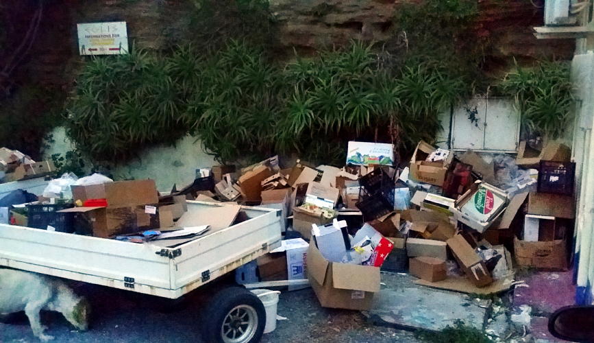 Δεν μπορώ να καταλάβω δεν μπορούν να σπάσουν της κούτες όμορφα και να της δέσουν και να της Στιβασουν ολλη η μαγαζάτορες . ΕΔΩ ΧΡΙΑΖΕΤΕ Η ΔΗΜΟΤΙΚΗ ΑΣΤΙΝΟΜΙΑ .ΟΠΩΣ ΚΑΝΟΥΝ ΣΤΟ ΕΞΩΤΕΡΙΚΟ. Η σκουπιδιάρηδες δεν τα παίρνουν ΕΑΝ δεν ειναι δεμένα οπως και η εφημεριδες και στέλνουν την Δ .αστηνομια και σου δίνουν 250 οο και Βλεπω το άνθρωπο με το ελετρικο φορτηγάκι γεμάτο κούτες να μην της πάρει ΕΑΝ δεν ειναι σπασμένες και δεμένες και της αφήσει απω εξω να τους Δοσουν πρόστιμο. ΘΖ ΝΥ