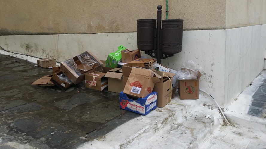 Δεν μπορώ να καταλάβω δεν μπορούν να σπάσουν της κούτες όμορφα και να της δέσουν και να της Στιβασουν ολλη η μαγαζάτορες . ΕΔΩ ΧΡΙΑΖΕΤΕ Η ΔΗΜΟΤΙΚΗ ΑΣΤΙΝΟΜΙΑ .ΟΠΩΣ ΚΑΝΟΥΝ ΣΤΟ ΕΞΩΤΕΡΙΚΟ. Η σκουπιδιάρηδες δεν τα παίρνουν ΕΑΝ δεν ειναι δεμένα οπως και η εφημεριδες και στέλνουν την Δ .αστηνομια και σου δίνουν 250 οο και Βλεπω το άνθρωπο με το ελετρικο φορτηγάκι γεμάτο κούτες να μην της πάρει ΕΑΝ δεν ειναι σπασμένες και δεμένες και της αφήσει απω εξω να τους Δοσουν πρόστιμο. ΘΖ ΝΥ