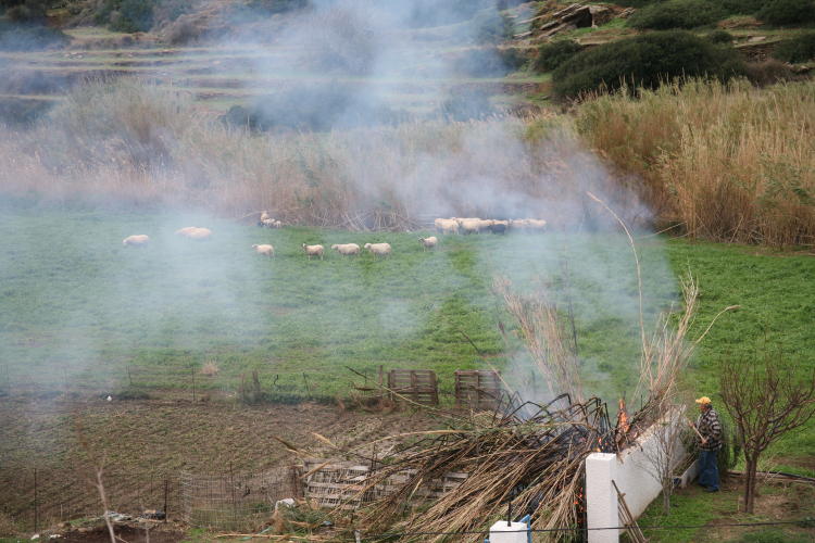 Δεν καίμε ξερά χόρτα, κλαδιά, καλάμια και σκουπίδια στην ύπαιθρο.