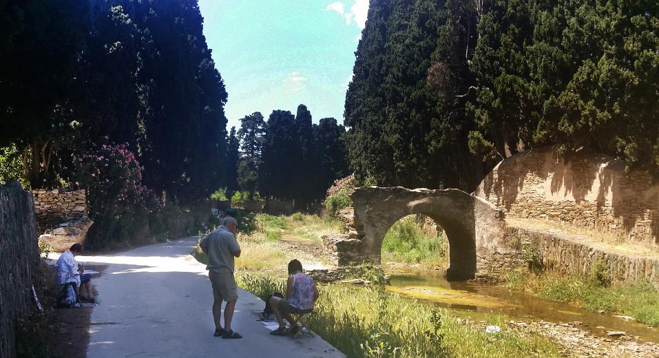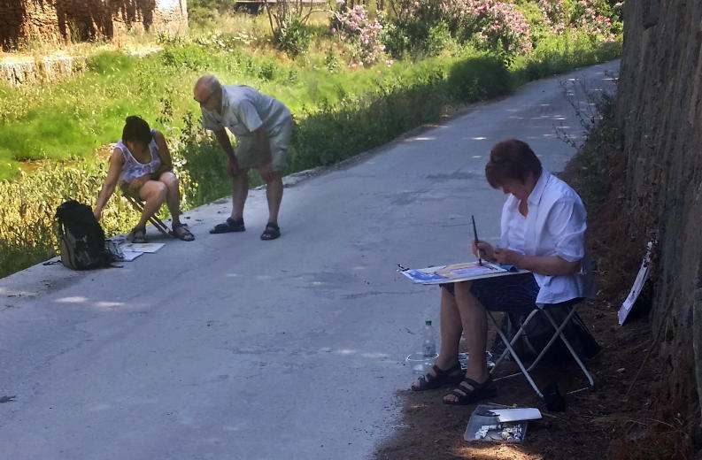 Προχτές, είδαμε περιπατητές να περνούν το μονοπάτι Νο 17 Χώρα Λειβάδια και την άλλη μέρα, ξαναήρθαν, όχι με μπαστούνια αλλά με καρεκλάκια και μπογιές, έκατσαν ένα γύρω όλοι και άρχισαν να ζωγραφίζουν το Λειβαδιανό γεφύρι που συγκαταλέγεται πλέον στα αξιοθέτα της Άνδρου .