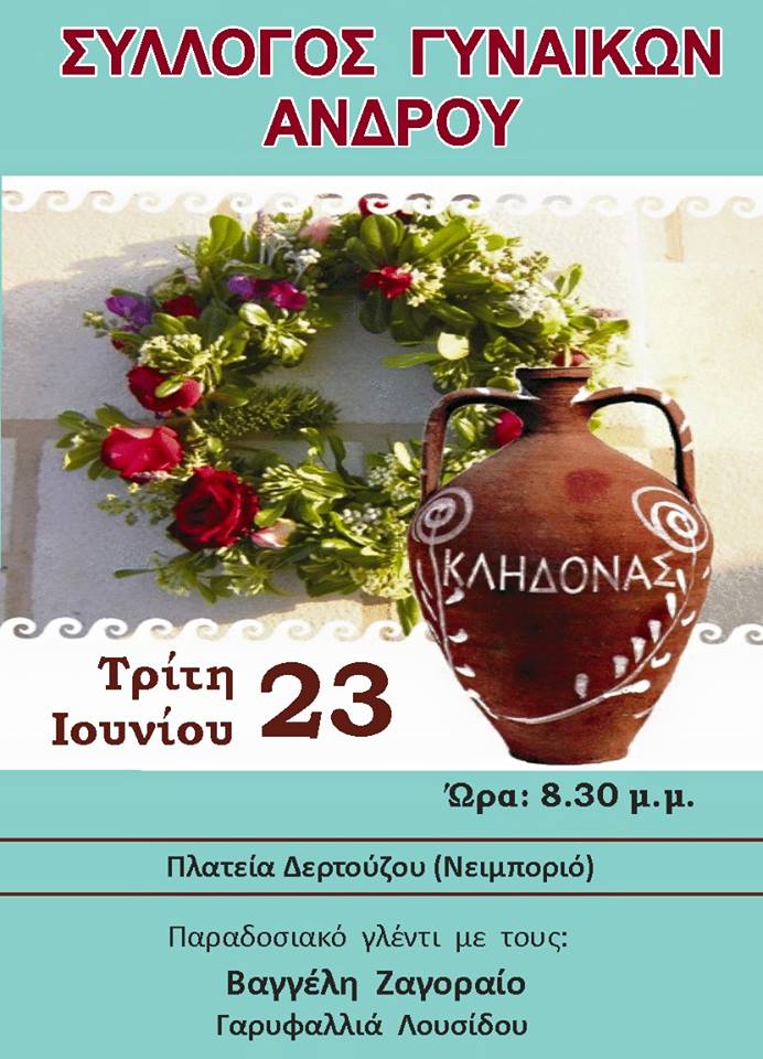 Το βράδυ μετά τις 9 ο σύλλογος Γυναικών και η Άνδρος Κοιν.Σ.Επ σας προσκαλούνε σε ένα γλέντι στην πλατεία του Όρμου Κορθίου ξεκινώντας απο την παράδοση,περνώντας απο σκωπτικά στιχάκια και τέλος συνοδεύοντας τις φωτιές με Αφρικάνικα κρουστά απο την Πangaia.