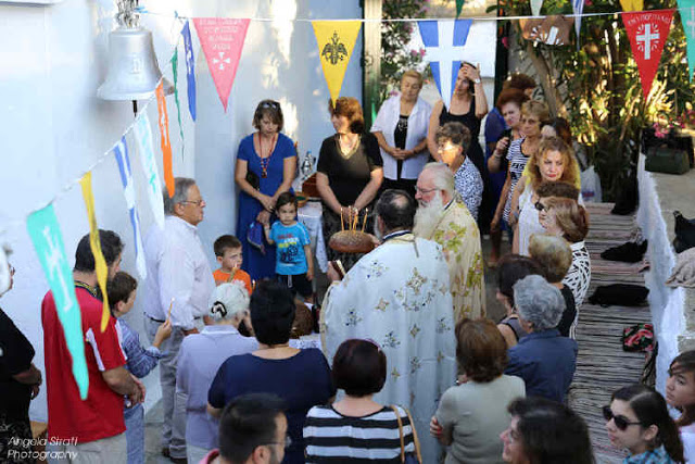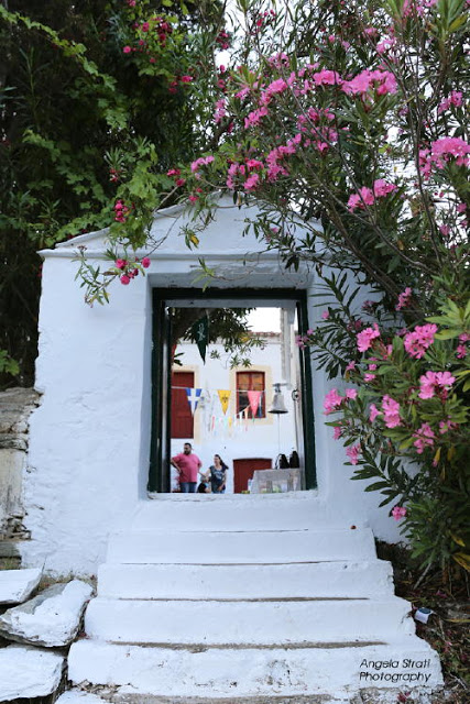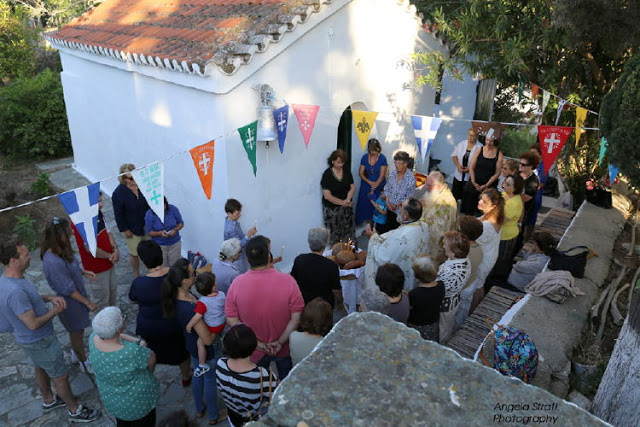 και μέσα στο εκκλησίασμα και η ιδιοκτήτρια των έργων του Man Ray, Marion Meyer που θέλησε να περπατήσει οικογενειακώς στις ομορφιές της Άνδρου.