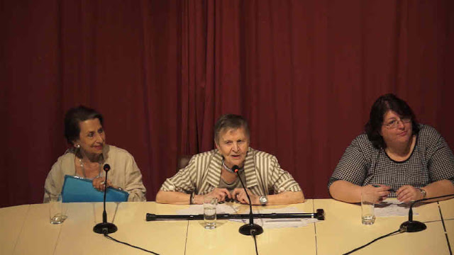 | Από αριστερά η Eva Meyer Zerbib, η ιδιοκτήτρια των έργων του Man Ray, Marion Meyer και η Έφη Ραπτάκη |