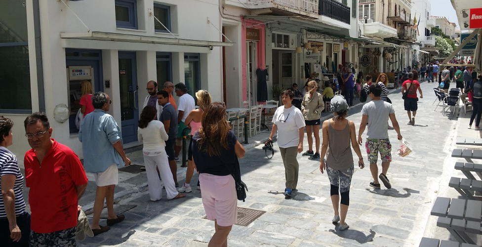 | όλοι πάνω στη Χώρα με τις κάρτες στα χέρια |