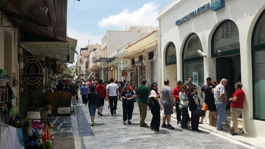 | σε μεγάλη ουρά μπροστά στις τράπεζες |