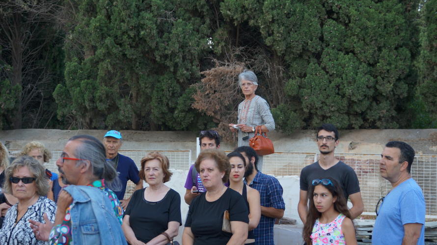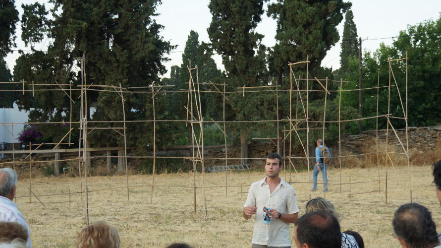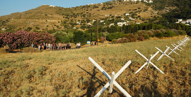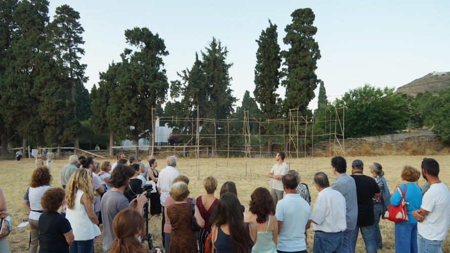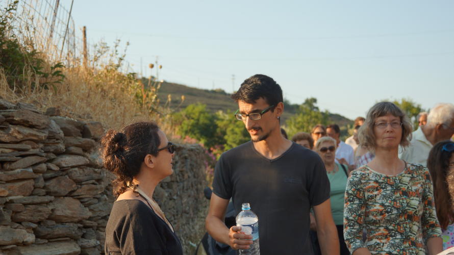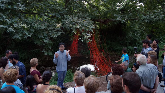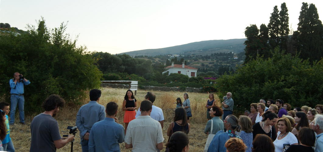 Λίγο πιο κάτω η φοιτήτρια Ζωή Φιλίππου μίλησε για το έργο της “Κύκλος” που αποτελείται από σακιά με χώμα χωμένα στη γη, σύμβολο του κύκλου της επιστροφής στη φύση