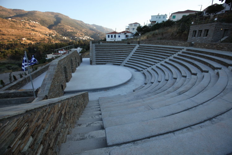 Οι εργασίες για την κατασκευή του υπερσύγχρονου θεάτρου ξεκίνησαν την 1η Αυγούστου 2014 και ολοκληρώθηκαν πριν συμπληρωθεί ένας χρόνος. Το θέατρο έχει χωρητικότητα 900 θεατών και χτίστηκε επάνω στη φυσική κλίση του εδάφους, δημιουργώντας ένα πέταλο 40 μέτρων. Η ανοικτή σκηνή είναι ένα έργο που σέβεται απόλυτα το φυσικό τοπίο, παραπέμπει στον κανόνα των κλασικών σκηνών και συνιστά μία από τις πιο τολμηρές παρεμβάσεις στο δημόσιο χώρο της Άνδρου μεταπολεμικά. Διαθέτει τέσσερα διαζώματα, έντεκα σειρές κερκίδων, δύο εισόδους, τέσσερις εξόδους και σύγχρονο τεχνικό εξοπλισμό, με καμαρίνια και βοηθητικούς χώρους για το κοινό. Η νέα σκηνή διαθέτει κυλικείο, πρόσβαση για ΑΜΕΑ και γειτνιάζει με τα δυο κεντρικά parking του οικισμού.