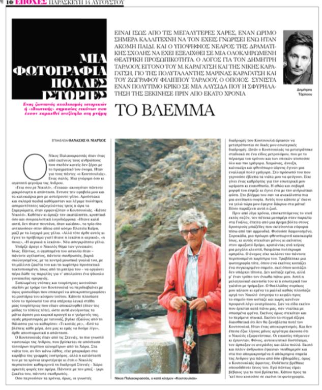 Το κείμενο δημοσιεύτηκε τη Παρασκευή 14 Αυγούστου στην εφημερίδα ΤΑ ΝΕΑ ΤΟΥ ΣΑΒΒΑΤΟΥ