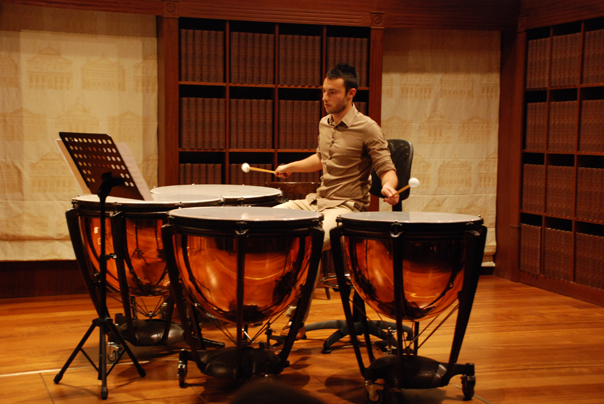 Έχει παρακολουθήσει σεμινάρια τυμπάνων και κρουστών με τους Δημήτριο Δεσύλλα, Stephan Fougeroux, Saulius Astrauskas, Tim Adams, Jacques Rémy, Edgar Saksons, John Beck, Casey Cangelosi, Pius Cheung, Eriko Daimo, Wieland Welzel, Antonio Cattone, Marta Klimasara, Nebojsa Jovan Zivkovic και Celinho Barros και κατά καιρούς έχει αποσπάσει ποικίλες διακρίσεις (1ο Βραβείο στα κρουστά στους Πανελλήνιους Μουσικούς Μαθητικούς Αγώνες 2001, αναπληρωματικό μέλος στην Ορχήστρα Νέων της Ε.Ε. τα έτη 2005, 2006 και 2008 και στην Παγκόσμια Ορχήστρα Νέων (The World Orchestra) το 2011, μέλος της Ελληνο-τουρκικής Ορχήστρας Νέων 2008 υπό τον Vladimir Ashkenazy, «Έπαθλο Ραθ» από το Δήμο Κερκυραίων το 2007, 3ο Βραβείο στην Advanced κατηγορία Ταμπούρου στα πλαίσια του 12ου Διεθνούς Διαγωνισμού Κρουστών Οργάνων – Days of Percussion 2014 που διοργανώνει η Italy Percussion Association στην πόλη Montesilvano στην Pescara της Ιταλίας, κ.ά).