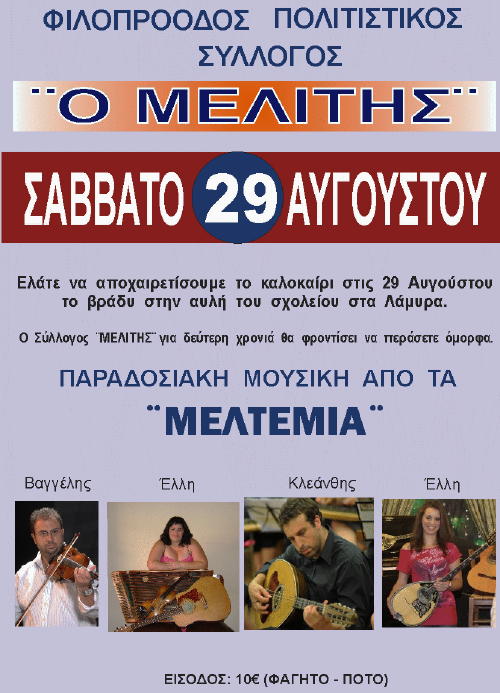 Σαββάτο 08 Αυγούστου, στις 10:00 το βράδυ