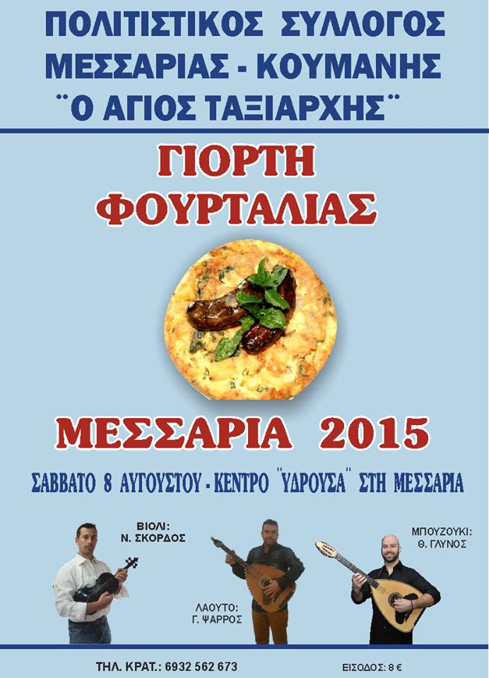 Το Δ.Σ του Εξωραϊστικού Πολιτιστικού Συλλόγου Μακροταντάλου “Η ΦΑΣΑ” είναι στην Ευχάριστη Θέση να σας προσκαλέσει στο Ετήσιο Καλοκαιρινό Πανηγύρι του Συλλόγου, το οποίο θα πραγματοποιηθεί στις 15/8/2015 στο Παλαιό Δημοτικό Σχολείο Άνω Βαριδίου.
