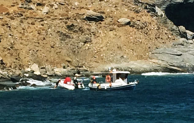 Όταν πλησίασαν, βρήκαν τον ιδιοκτήτη να προσπαθεί με τα χέρια του να κρατήσει το σκάφος μακριά από τα βράχια