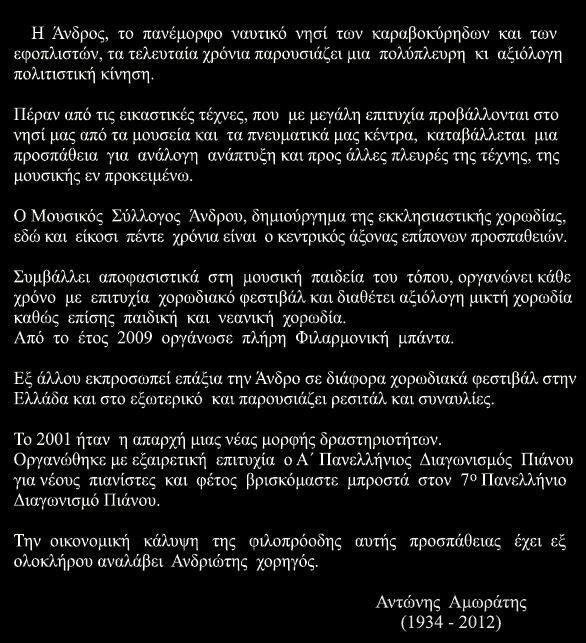 ΤΙΜΗ ΓΙΑ ΤΗΝ ΑΝΔΡΟ Η ΔΙΕΞΑΓΩΓΗ ΤΟΥ ΔΙΑΓΩΝΙΣΜΟΥ ΓΙΑΤΙ ΚΑΝΕΙ ΤΟ ΝΗΣΙ ΜΑΣ ΓΝΩΣΤΟ ΠΑΝΕΛΛΗΝΙΩΣ. ΘΕΡΜΑ ΣΥΓΧΑΡΗΤΗΡΙΑ ΙΔΙΑΤΕΡΑ ΣΤΗΝ Κ.ΝΤΟΡΙΝΑ ΑΜΩΡΑΤΗ ΤΗΝ ΨΥΧΗ ΤΗΣ ΕΚΔΗΛΩΣΗΣ ΓΙΑ ΤΗΝ ΑΨΟΓΗ ΟΡΓΑΝΩΣΗ.